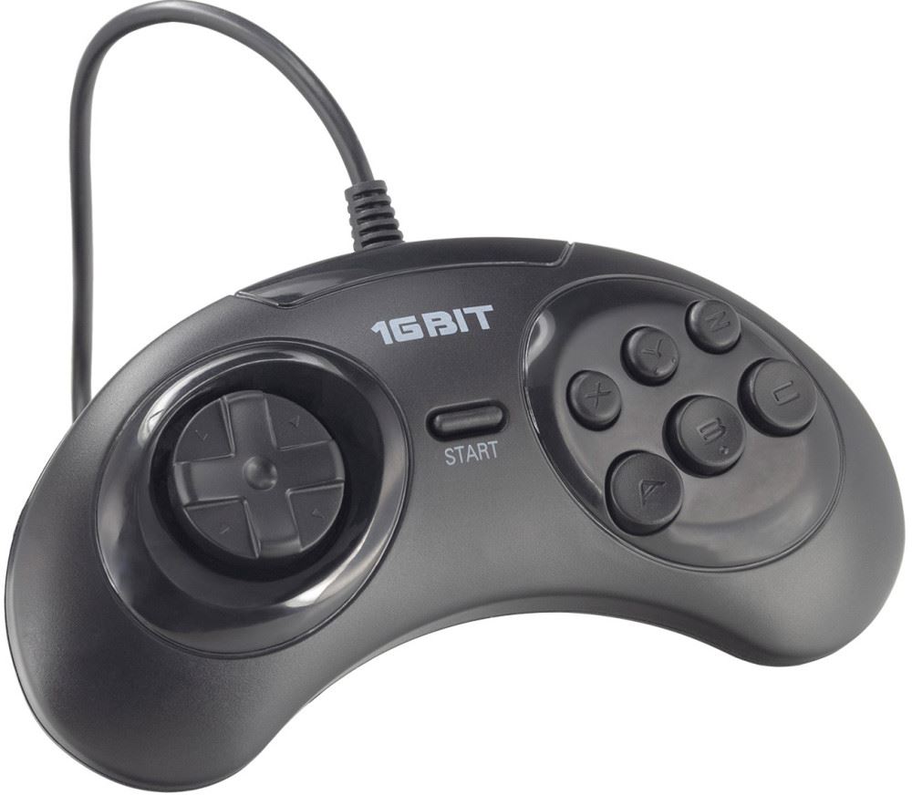 Контроллер игровой для игровых приставок Retro Genesis. Комплектуется традиционной капитальной D-Pad крестовиной, кнопкой Start, 6-ю кнопками действия и кнопкой Mode на торце контроллера. Длина провода: 145см. Имеет традиционный 9-пиновый разъем, подходит ко всем Sega-сходным устройствам, оснащенных сходным разъемом.